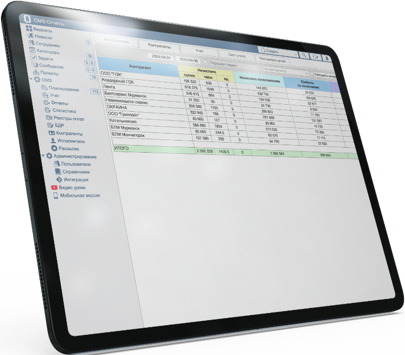 Отчет по рентабельности, среднему выходу исполнителей и не только